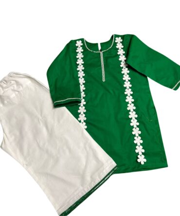 Green & White Lace Detailed Traditional Suit (Kids Collection)