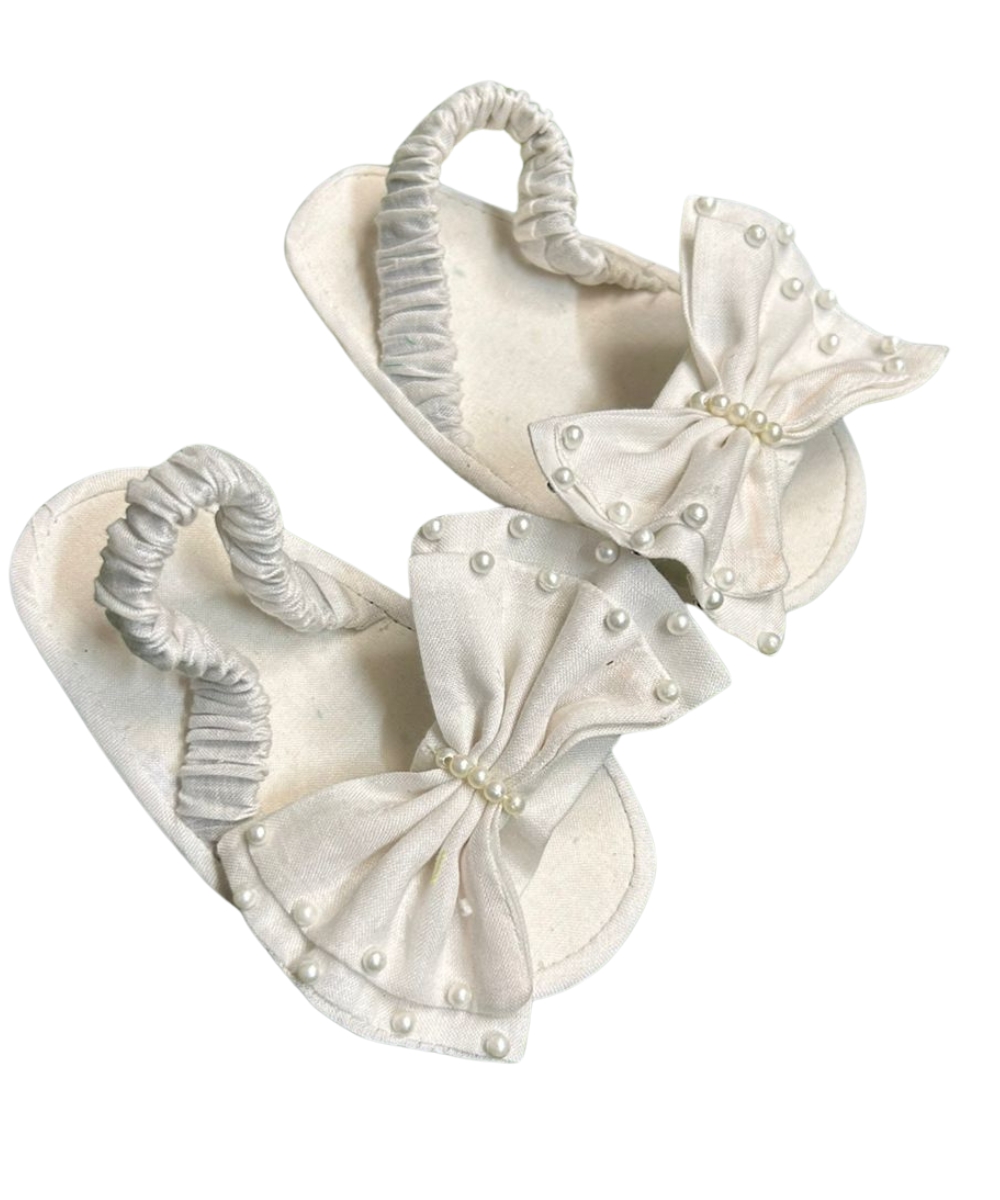 Paired with the top are off-white wide-legged pants with frilled ends, perfectly balancing style and comfort. The elastic waistband ensures a comfortable fit, allowing your child to move freely and enjoy her day. This outfit is ideal for festive gatherings, casual outings, or even semi-formal events, offering a perfect blend of elegance and cuteness.