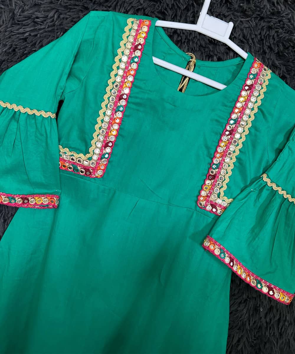 Color: Green with Multi-Color Lace